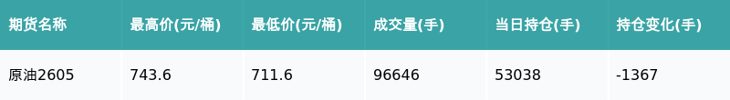 南财智讯3月26日电,盘后期货数据显示,上期能源的原油主力合约收涨0.81%,收盘报733.1元/桶,日内资金流出2.21亿元。其他相关指标见下表: